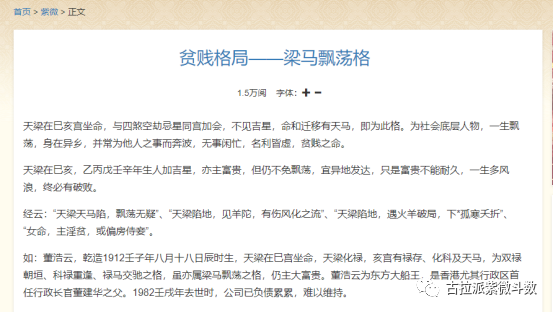 一个“梁马飘荡”在命宫,“羊陀夹忌”在他的子女宫,我们先来看看某些网站对这两个格局的评价
