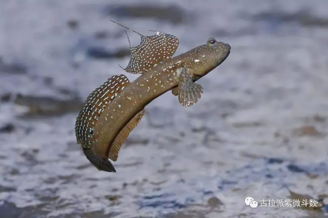 弹涂鱼生活在盐水泥滩,食肉性,好斗,具有弹跳、喜欢爬高的习性