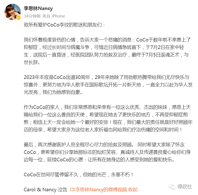 CoCo isOn the afternoon of July 2Using nail clippers to cut wrists and commit suicide,